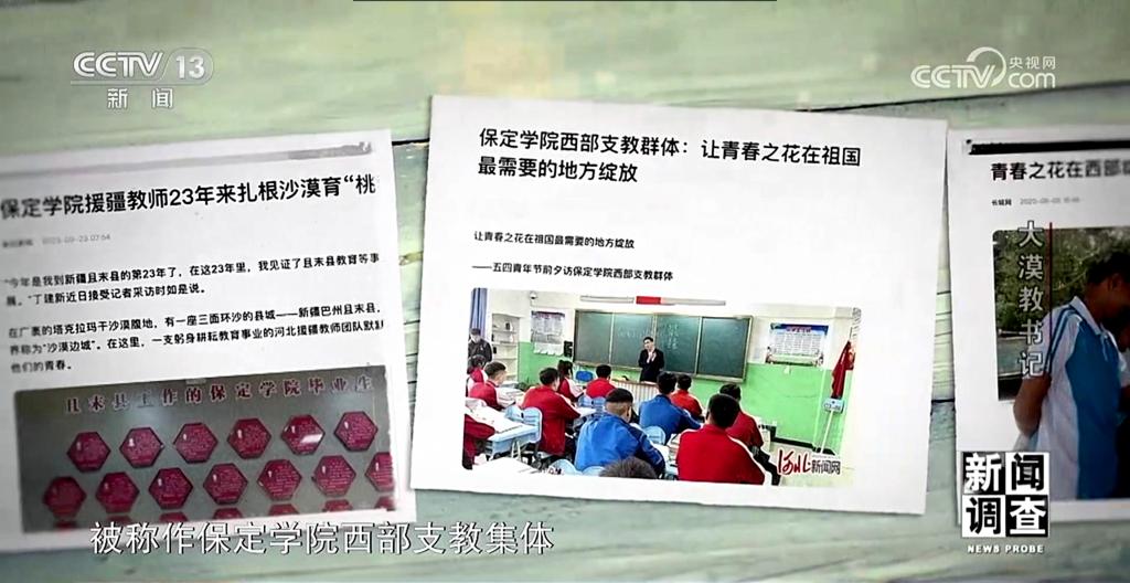 11月18日晚,中央广播电视总台央视新闻频道《新闻调查》栏目播出专题片《大漠教书记》,节目用42分钟时间讲述了我校西部支教毕业生且末群体扎根天边小城23年、矢志不渝教书育人的感人故事和可贵精神。