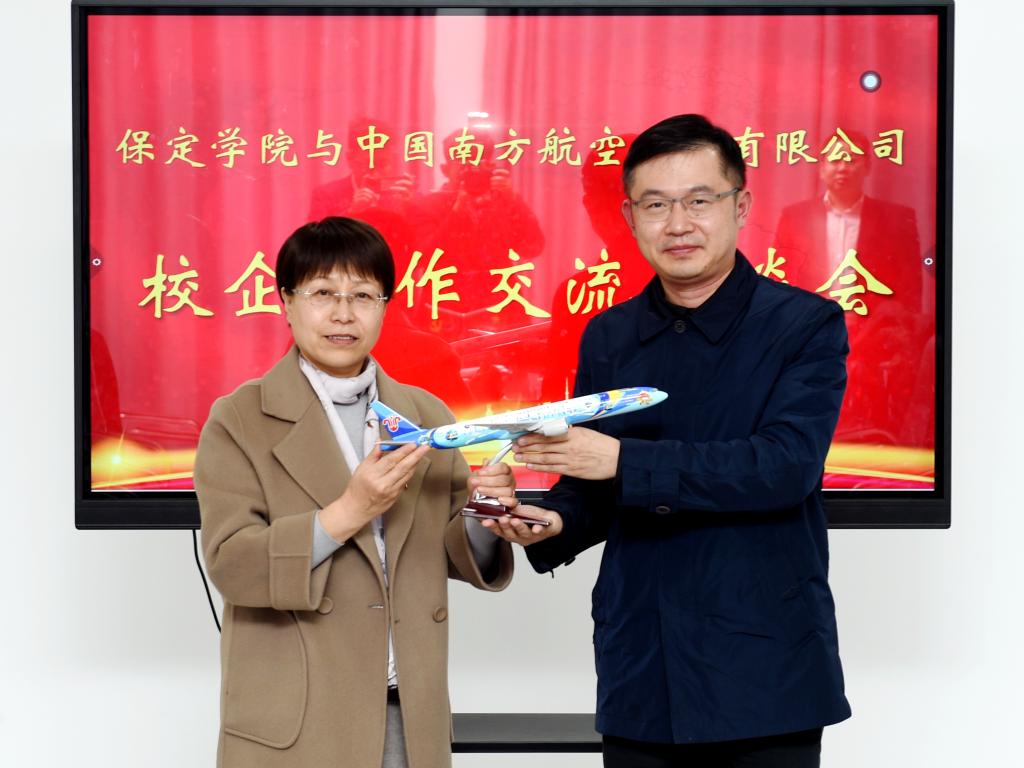 11月28日,保定学院与中国南方航空集团有限公司校企合作交流座谈会在金通民航现代产业学院多功能展示厅举行。中国南方航空集团有限公司人力资源部副总经理张鹏、招聘管理室主管刘鑫,北京分公司人力资源管理主管居福宝、郑义,我校党委副书记、校长韩会玲,教务处、地理与旅游学院负责同志参加座谈会。