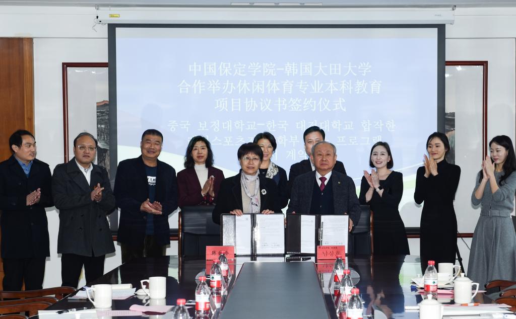会上,韩会玲、南相豪代表双方签订了《中国保定学院与韩国大田大学合作举办休闲体育专业本科教育项目协议书》。
