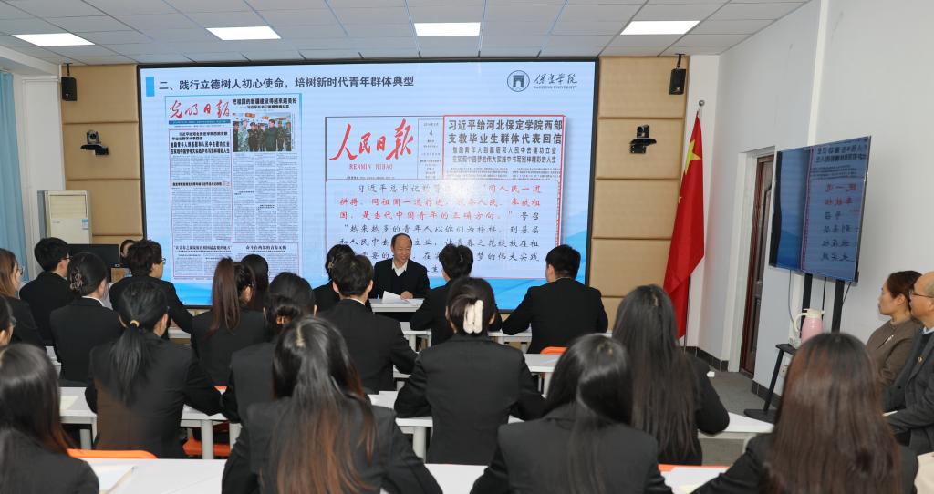12月29日上午,党委书记胡连利来到文学院为学生们上了一堂以“保定学院西部支教毕业生群体典型的精神探源与时代价值”为主题的思政课。