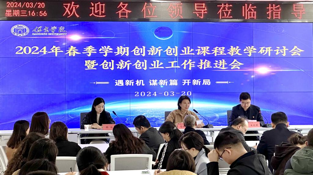 3月20日,保定学院2024年度春季学期创新创业课程教学研讨会暨创新创业工作推进会在现代实训中心“红柳苑创”众创空间路演厅召开。党委常委、副校长马丽娟,各二级学院负责同志、创新创业工作负责人、创新创业基础课程任课教师参加会议。