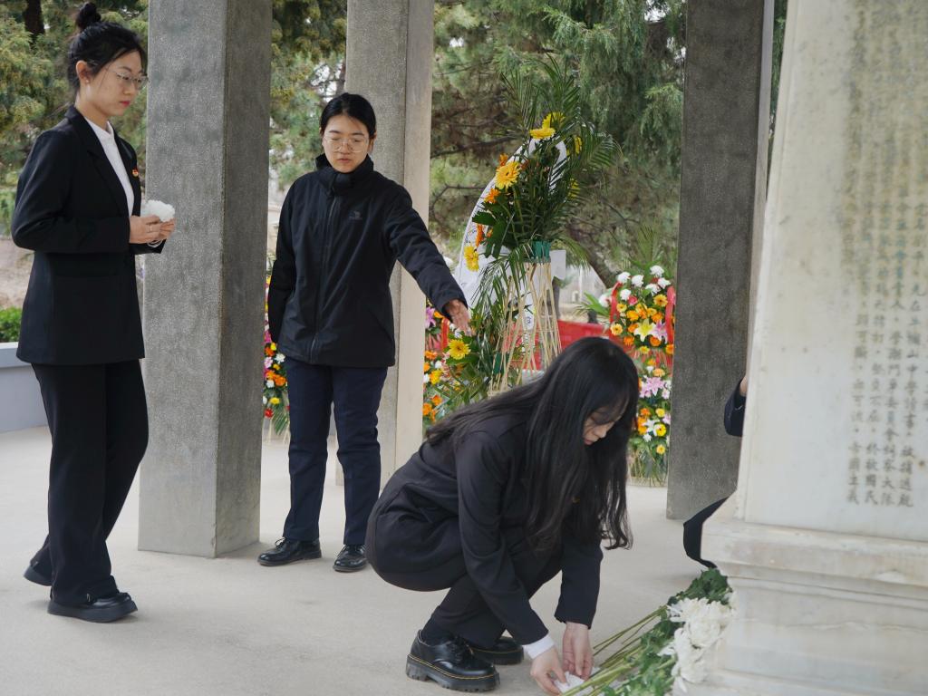 4月2日,党委副书记刘清波带领师生到“七六”烈士纪念园开展“缅怀革命先烈 发扬光荣传统 传承红色基因 勇担青春使命”清明祭扫主题团日活动。