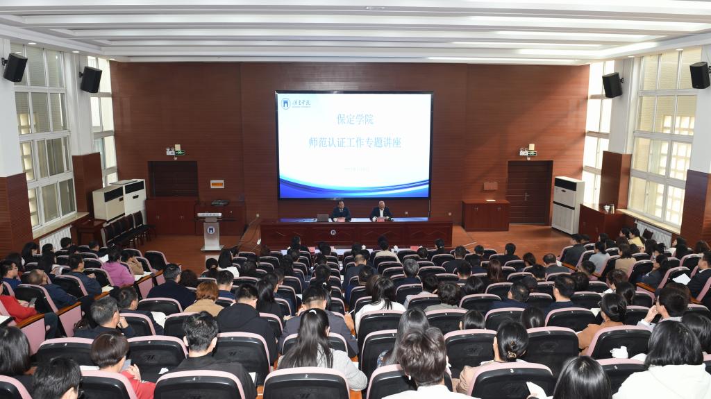 4月8日上午,保定学院师范类专业认证工作培训会在昌绪学术厅举行,河南省教育评估中心副主任张新民教授应邀作专题讲座。