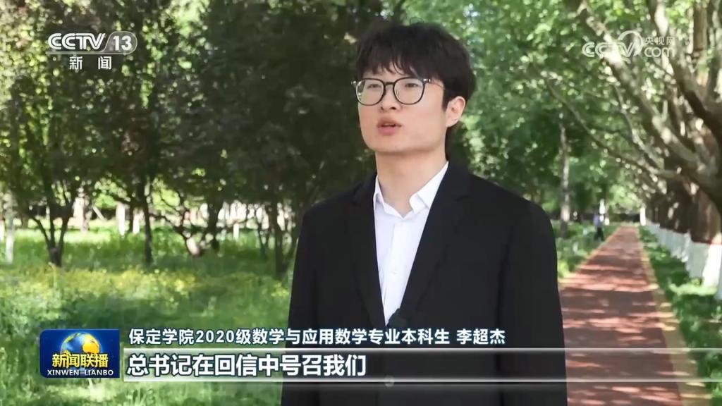 5月4日晚,央视《新闻联播》“新思想引领新征程”栏目推出专题报道“让青春在新时代奋斗中绽放光芒”,聚焦广大青年在习近平新时代中国特色社会主义思想指引下,在推进强国建设、民族复兴伟业中展现青春作为、彰显青春风采、贡献青春力量,奋力书写为中国式现代化挺膺担当的青春篇章的奋斗实践。报道播出了我校即将奔赴新疆且末任教的2024届毕业生群体誓师出征和接受央视记者采访的画面。群体代表、2024届数据科学与软件工程学院学生李超杰坚定地表示:“总书记在回信中号召我们,让青春之花绽放在祖国最需要的地方。我认为西部和边疆,那里的孩子需要我,我要到那里去实现我的人生价值,去做一名优秀的人民教师。”