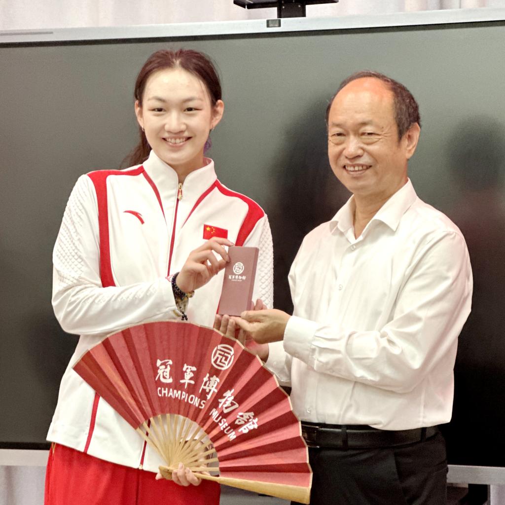 李冰洁表示,这枚金牌是在世界大学生运动会获得的,希望把这份荣誉贡献给家乡,留在这座建在大学里的博物馆,让更多的大学生朋友感受体育精神,体会体育文化的魅力,汲取奋进力量。