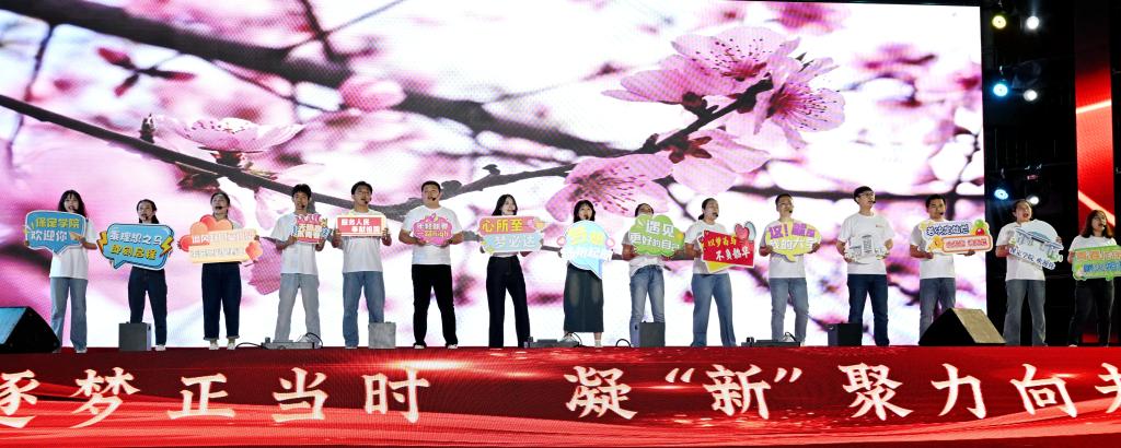 9月26日晚,保定学院体育场灯光璀璨,欢歌悠扬,“百廿荣光 青春筑梦”2024年庆国庆迎新生文艺演出精彩上演。党委副书记刘清波,党委常委、副校长孙斌,相关部门、各二级学院负责同志,教师代表和4000余名2024级新生齐聚一堂,共赴青春盛会,同庆伟大祖国75周年华诞。