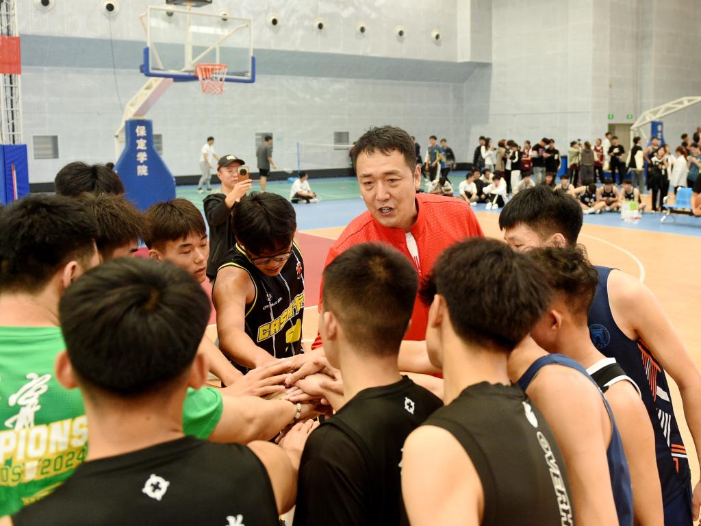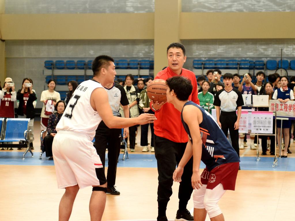随着篮球亚洲冠军闫宇峰为师生表演赛开球,保定学院第十八届篮球赛正式开启。