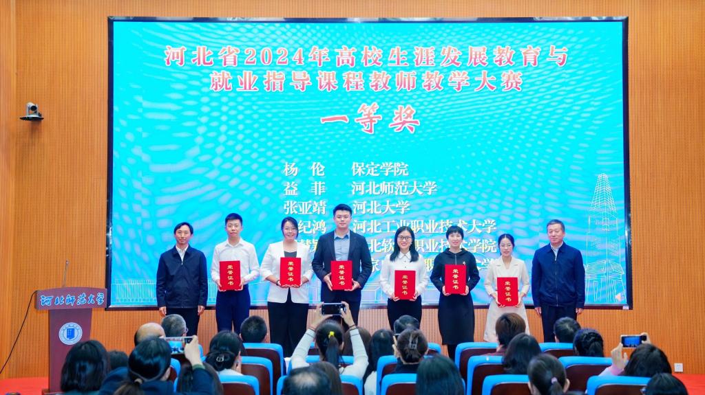 此次大赛由河北省教育厅主办,是我省规模最大、级别最高、影响范围最广的高校生涯发展教育与就业指导课程教学赛事。大赛自今年7月启动以来,经过校赛推荐、复赛评审,最终遴选出本科组11名、高职组10名选手参加全省总决赛。在决赛现场,我校教师杨伦展示的是“生涯人物访谈”,她以新颖的教学设计、良好的课堂互动获得了专家评委、观摩教师和参与学生的一致好评,最终以优异成绩荣获一等奖。