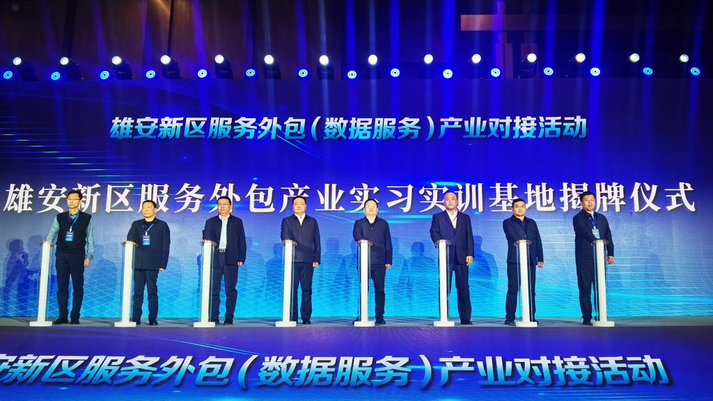 12月6日,雄安新区服务外包(数据服务)产业对接活动在雄安新区商服会展中心举行,我校党委常委、副校长孙斌受邀参加活动,并与驻保高校代表共同为雄安新区服务外包实习实训基地揭牌。