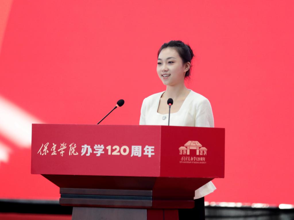 学生代表、教师教育学院小学教育专业李安琪在发言中表达了新时代保定学院人砥砺奋进、青春荣校、奋斗强国的坚定决心。