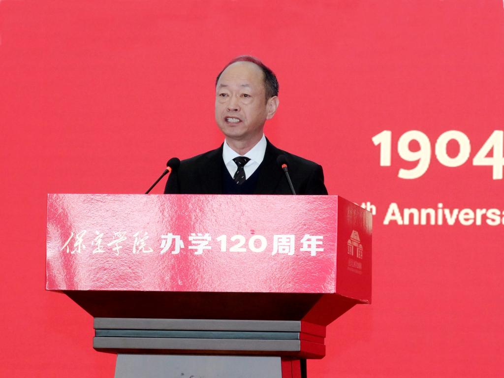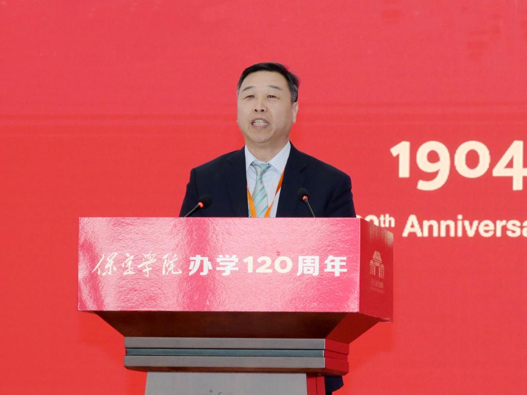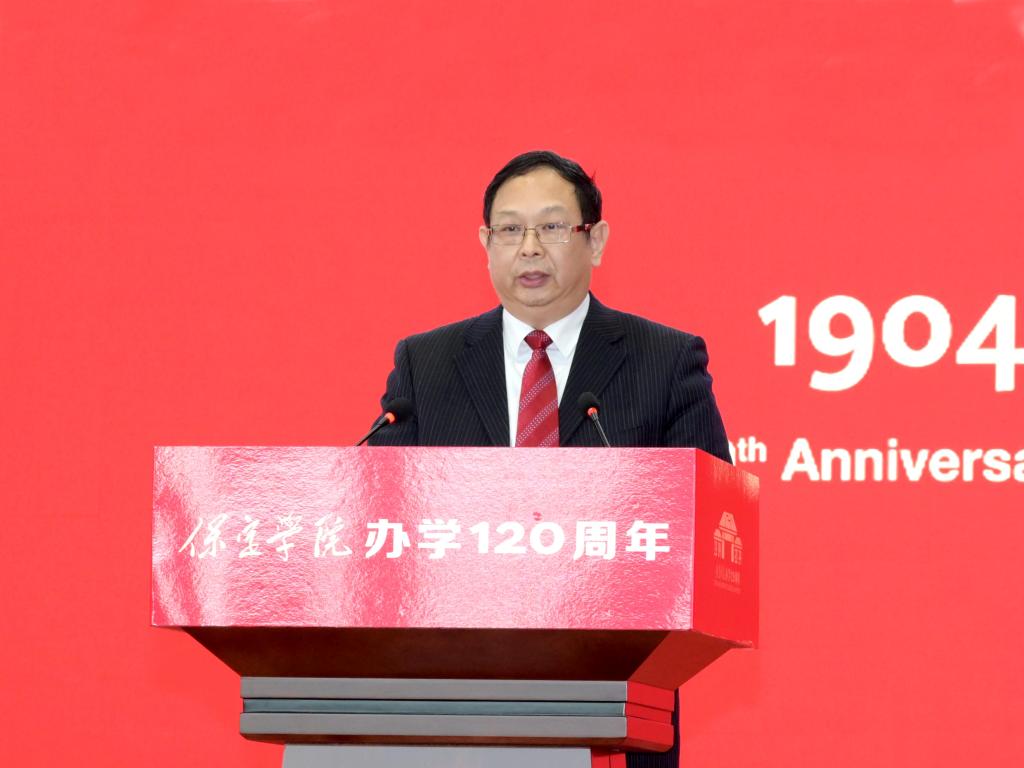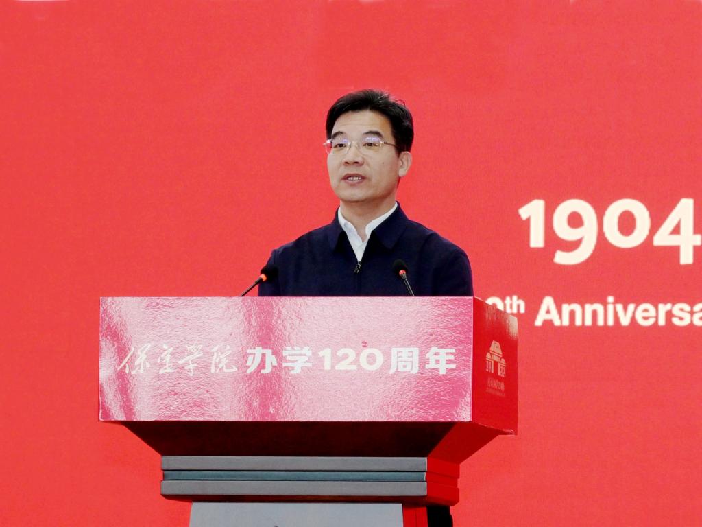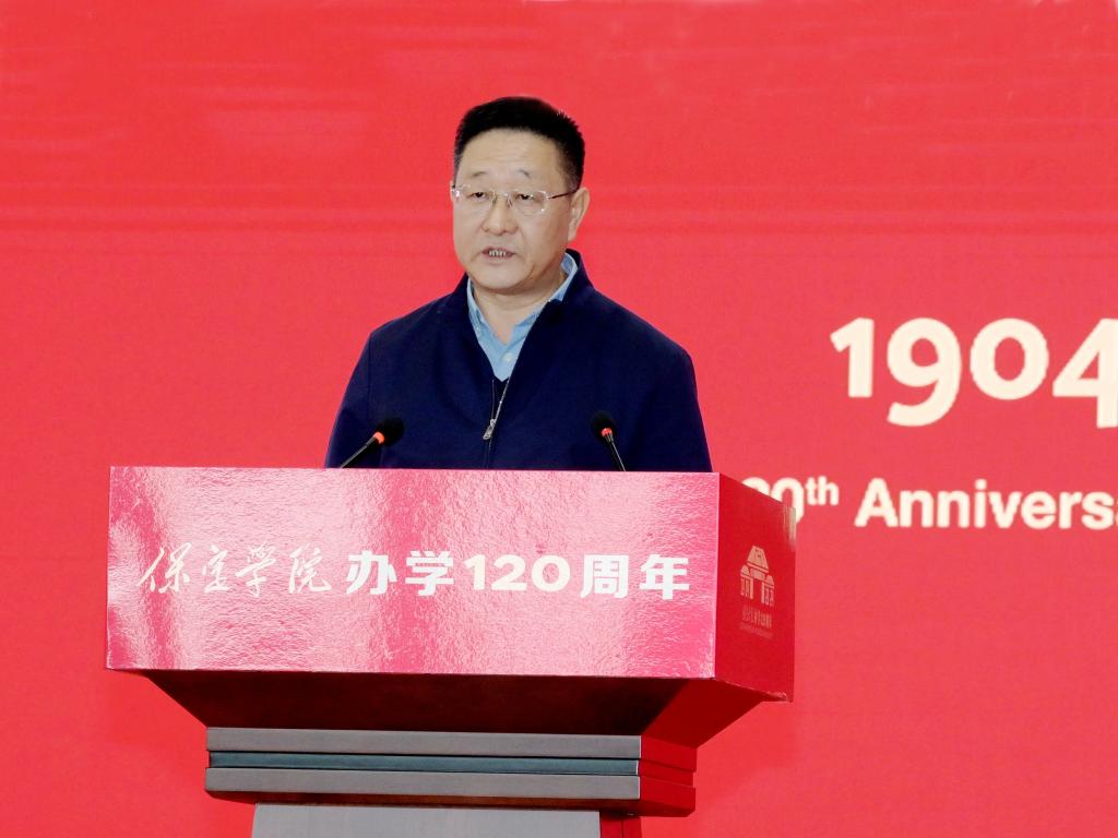 王伟在讲话中强调,120年风雨兼程,保定学院在筚路蓝缕、艰苦奋斗中砥砺前行,书写了一部教育报国的爱国史。革命年代,在党的领导下,学校学生勇赴国难,“七六”爱国护校斗争先烈用热血谱写了救亡图存、振兴中华的慷慨悲歌;新中国成立后,学校积极服务国家战略,培养培训了25万余名基础教育师资等各类人才。2014年五四青年节前夕,习近平总书记给保定学院西部支教毕业生群体代表回信,这既是对西部支教毕业生群体的肯定和赞誉,也是对保定学院办学方向与育人成果的指引和激励。自建校以来,保定学院始终坚持服务保定经济社会发展,始终秉持严谨的治学态度和崇高的教育理想,培养了一批又一批优秀人才。市委市政府将一如既往支持保定学院的建设和发展,希望保定学院秉承“德业兼修 知行并重”的校训,坚持为党育人、为国育才的初心使命,以办学120周年为新起点,切实加强党对高校的全面领导,深入落实立德树人根本任务,主动对接保定主导产业,服务京津冀协同发展战略和京雄保一体化发展新格局,以产教融合、校企合作、校地合作为路径,构建协同育人、协同创新的开放办学模式,为保定经济社会发展培养大量高素质人才。希望广大学子树立远大理想,传承红色基因,珍惜青春年华,勤奋学习,刻苦钻研,心怀爱国情,笃定报国志,付诸强国行。希望广大校友积极宣传保定、展示保定,引进更多优质资源汇聚保定,共同发展,共赢未来。祝愿保定学院薪火相传,勇攀高峰,再创佳绩。
