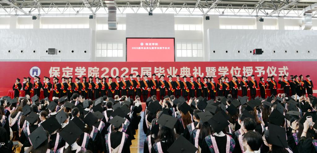 6月13日上午,保定学院2025届毕业典礼暨学位授予仪式在体育馆举行。校领导胡连利、刘清波、周林伟、汤志江、马丽娟、孙斌、赵晓明,校学位评定委员会委员,学生工作领导小组成员单位、各二级学院负责人和全体辅导员参加典礼,共同欢送近4000名毕业生携梦远航。党委常委、副校长赵晓明主持典礼。