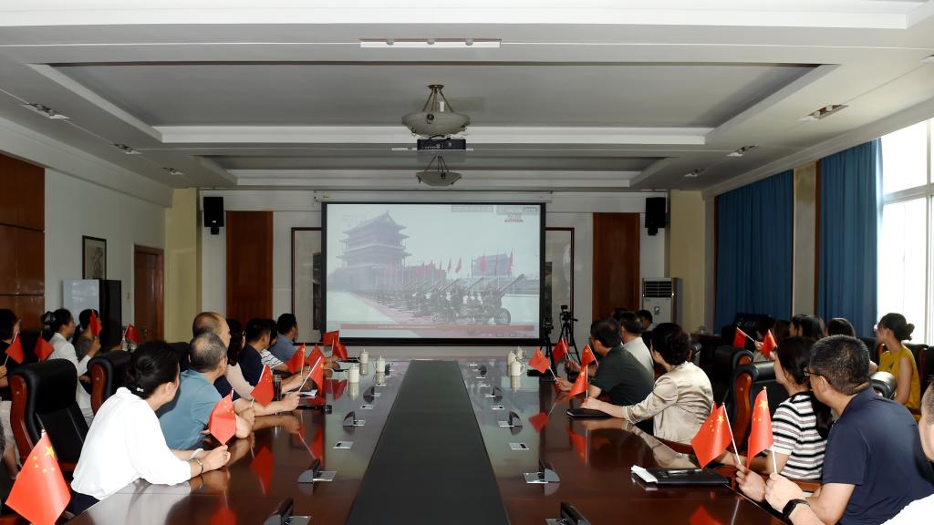 在会议室、教室等集中观看现场,校领导与广大教职工一起观看学习。当看到受阅部队整齐威武的方阵、新型武器装备的亮相,大家倍感振奋,为祖国的繁荣强盛感到无比骄傲。
