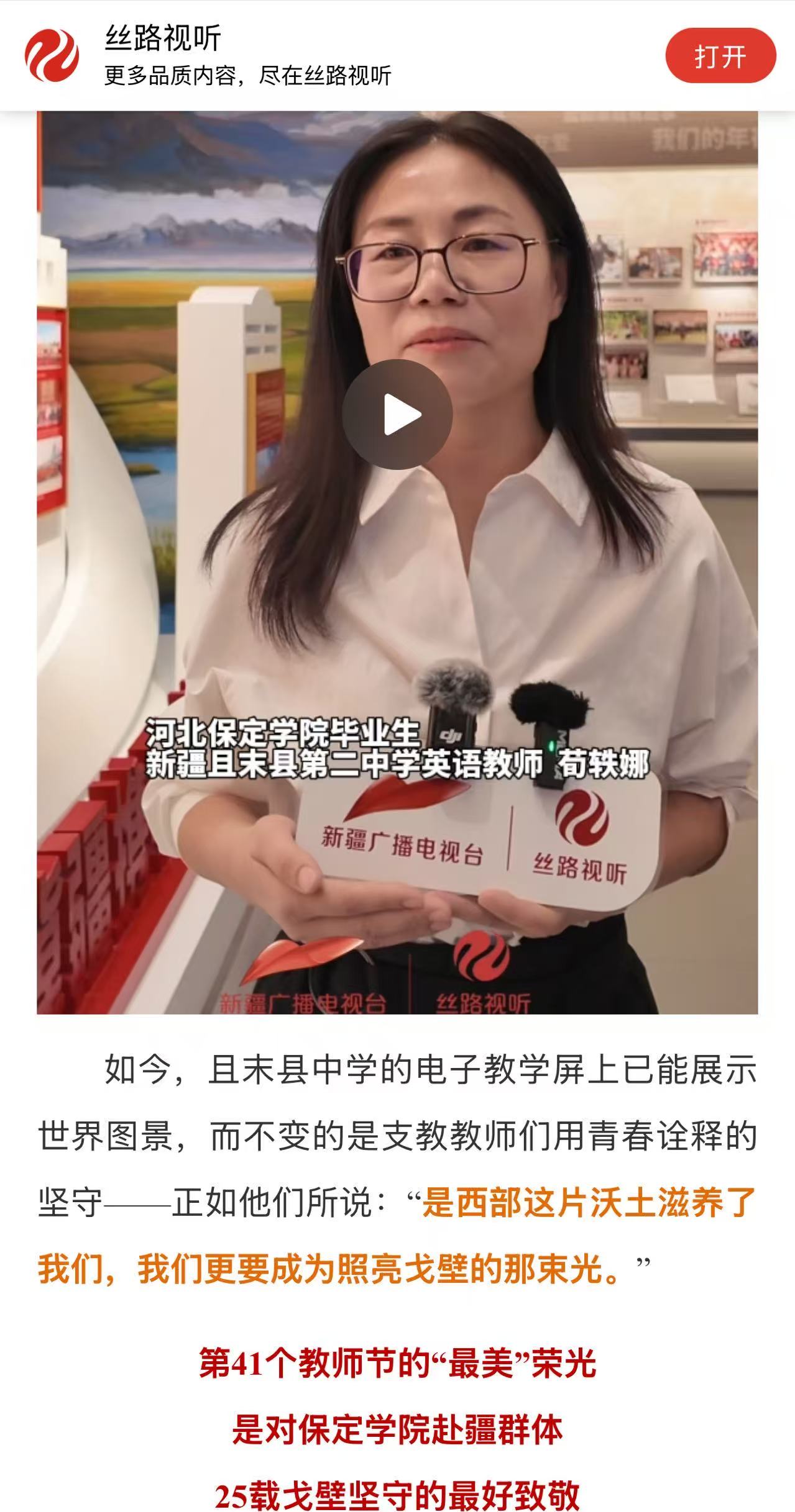《农民日报》:从保定到且末,他们把讲台站成了故乡 https://mp.weixin.qq.com/s/Csu8jv7i-5LiOWZQmBamlw