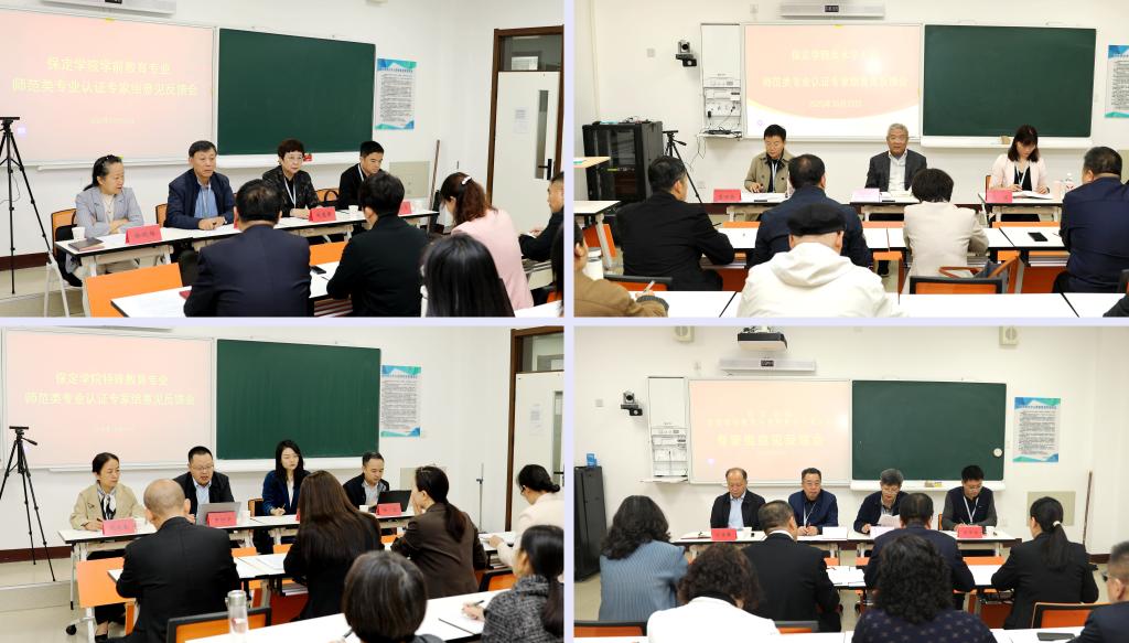 另,在总体意见反馈会前,专家组在微格教学中心举行分组会议,分别对四个专业培养目标、毕业要求、课程与教学、合作与实践、师资队伍、支持条件、质量保障、学生发展等方面的情况作了详细反馈。