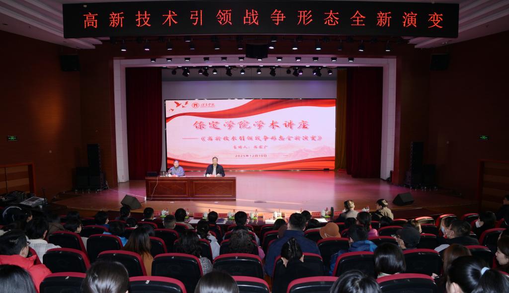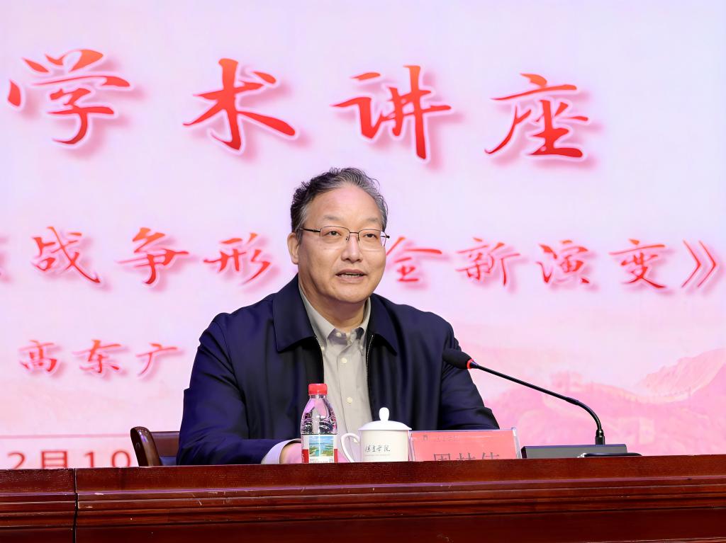 讲座中,高东广以《高新技术引领战争形态全新演变》为题,立足时代前沿,从九三大阅兵展现的国防科技硬实力、毛泽东思想中蕴含的军事辩证法智慧等多元视角切入,围绕战争形态从机械化向信息化、智能化迭代的核心特征,深入剖析了大数据、云计算、人工智能等前沿技术对军事领域的深远影响,展示了中国人民解放军的现代化战力与我国日益强大的国防实力。他鼓励师生,在人工智能主导的新军事革命浪潮中,持续锤炼创造性思维,提升科学决策素养,主动对接时代发展需求,才能在社会发展中找准定位、实现价值。