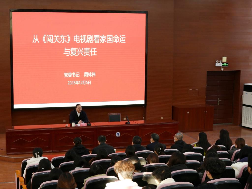 12月5日下午,党委书记周林伟以《从<闯关东>电视剧看家国命运与复兴责任》为题,为马克思主义学院、经济管理学院、音乐舞蹈学院的270余名学生讲授思政课。