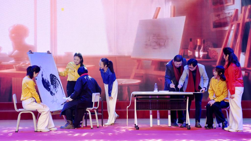 联欢会在热烈喜庆的民乐合奏《花好月圆》中拉开帷幕,各分工会选送的精彩节目轮番登场,充分展现了广大教职工的风采与精神面貌:歌伴舞《春风十万里》将春日的生机娓娓道来;歌伴画《竹报平安》巧妙融合艺术创作与声乐表演,韵味悠长;诗朗诵《我的南方和北方》在南北意境的切换中抒发深厚的家国情怀;手语伴舞《最美的太阳》传递出温暖与奋进的力量;武术表演《师者同行·武动风华》一招一式刚劲有力,展现昂扬精气神;男高音独唱《我像雪花天上来》深情演绎,尽显专业水准;红歌联唱《红歌献礼·师声迎春》激昂旋律催人奋进;交响合唱《爱永在》《在太行山上》打造震撼视听效果;三句半表演《我的祖国我的家》语言诙谐、节奏明快,引得全场阵阵欢笑;诗朗诵《西部支教赞歌》深情讲述支教故事,诠释服务人民、奉献祖国的担当与实践;二重唱《绿叶对根的情谊》温情诉说对学校的感恩与眷恋;歌伴舞《任我》活力满满,展现教职工的蓬勃朝气;舞蹈·礼仪《云端礼赞·舞韵华章》将舞蹈美感与礼仪表演完美融合,尽显典雅风范。
