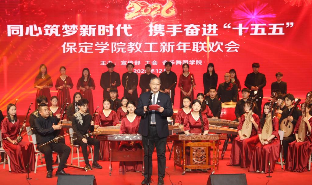 2025年12月31日下午,畿辅文化会堂内欢声笑语、喜气融融,“同心筑梦新时代 携手奋进‘十五五’”保定学院2026新年教职工联欢会在此圆满举行。校领导周林伟、孙胜存、汤志江、于振海、马丽娟、赵其国、赵晓明和广大教职工齐聚一堂,共话未来、喜迎新年。