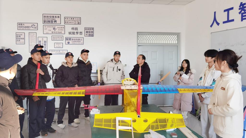 研学期间,师生们共同学习了习近平总书记给我校西部支教毕业生群体代表的重要回信精神。在校史馆和西部支教主题展馆内,大家在生动讲解的引导下,重温我校支教毕业生扎根大漠、倾心育人的初心故事。走进人工智能产业学院,师生们先后探访了智航天翼科创工作室、智能机器人科创工作室、AL先锋俱乐部,近距离观摩科创成果。在学生社团“遗梦织彩”非遗传习社,大家亲手参与非遗百福图黏土彩泥制作,在沉浸式体验中触摸传统技艺的温度。在地理与旅游学院航空专业教学实训基地内,大家饶有兴致地观摩飞机模型、体验模拟驾驶舱,真切感受产学研融合的育人特色,对未来职业规划打开了全新视野。