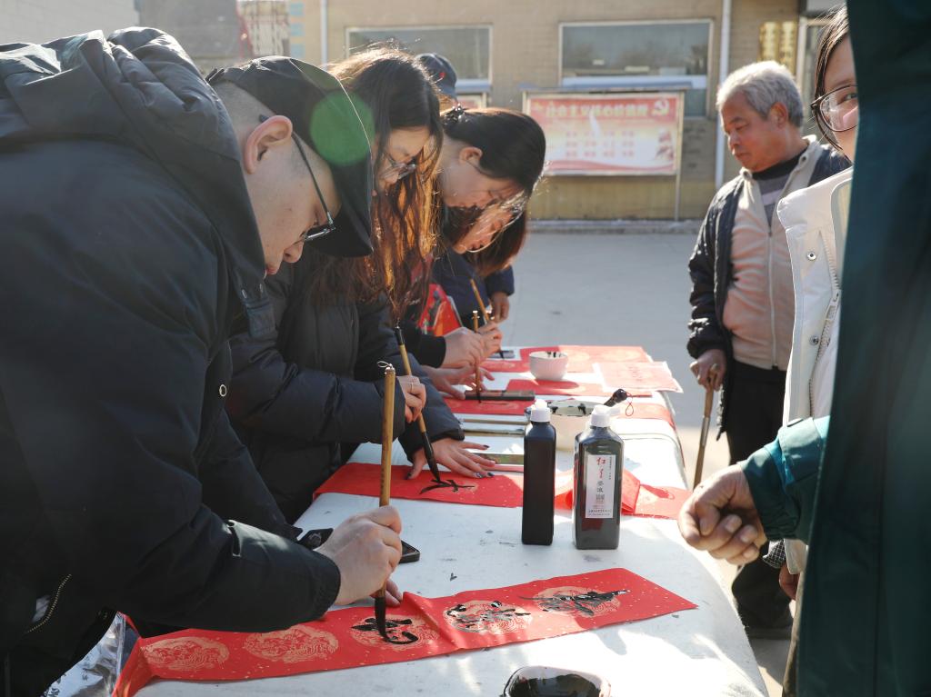 1月8日,曲阳县北台乡罗家峪、韩家峪村委会院内暖意融融、喜庆热闹,保定学院乡村振兴写春联送祝福活动在两村温情启幕。我校师生志愿服务队分赴两村,以笔墨为媒传递新春期许,为乡亲们送上满含心意的节日问候。