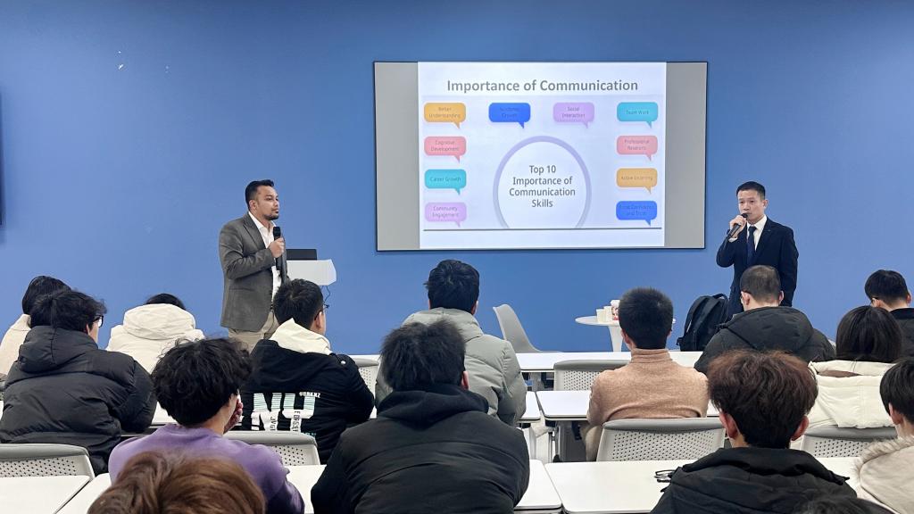 当日下午,菲道斯走进人工智能学院,为师生带来一场专题讲座。他以现代工程领域技术环境的快速变革为切入点,讲解了工程师应当如何通过持续学习、团队协作等方式,提升自身的环境适应力与技术创新力。