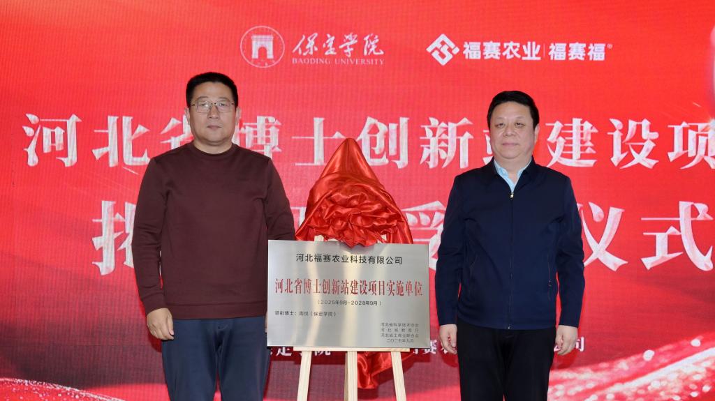 1月16日,保定学院与保定福赛福生物科技集团共建的河北省博士创新站揭牌仪式暨项目合作研讨会圆满举行。党委副书记、校长孙胜存教授,党委常委、副校长赵晓明教授带领科研处、生物化工与环境工程学院核心团队参加仪式,福赛福集团董事长魏哲彦携核心管理团队见证这一校企合作的重要时刻。