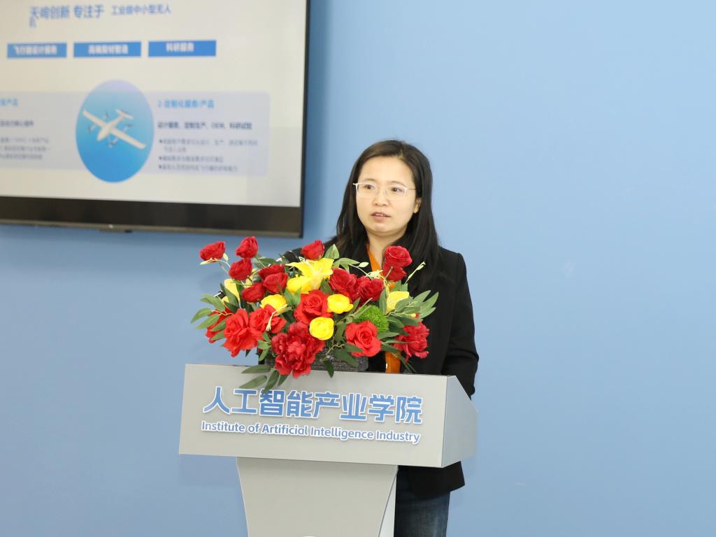 天峋创新(河北)科技有限公司董事长助理郭晓红作《无人机产业赋能千行百业与人才链路重构》主题报告,详细介绍了无人机与低空经济的发展现状及多行业应用场景,重点围绕产业人才缺口问题,探讨了面向未来的人才培养体系构建路径。