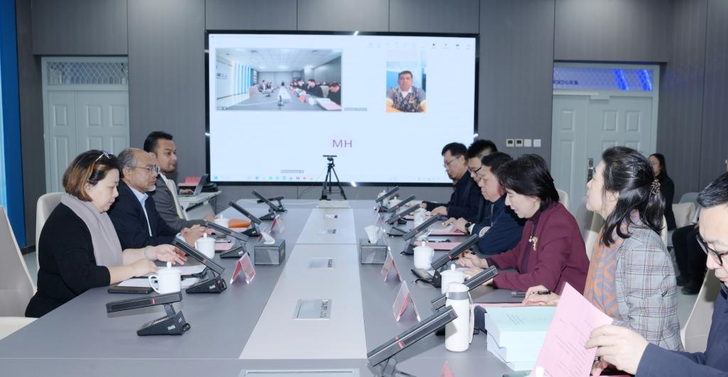党委副书记、校长孙胜存教授代表我校对来宾表示热烈欢迎,并在交流座谈会上,详细介绍了我校的办学历史、办学理念、产教融合实践和人才培养成效。吉隆坡大学校长阿兹曼·赛宁通过线上方式参会并致辞,表示对两校未来的深度合作充满期待。阿兹米·哈桑对我校的热情接待表示衷心感谢,全面介绍了吉隆坡大学的办学定位、学科优势及国际化发展布局。党委常委、副校长马丽娟教授主持交流会。