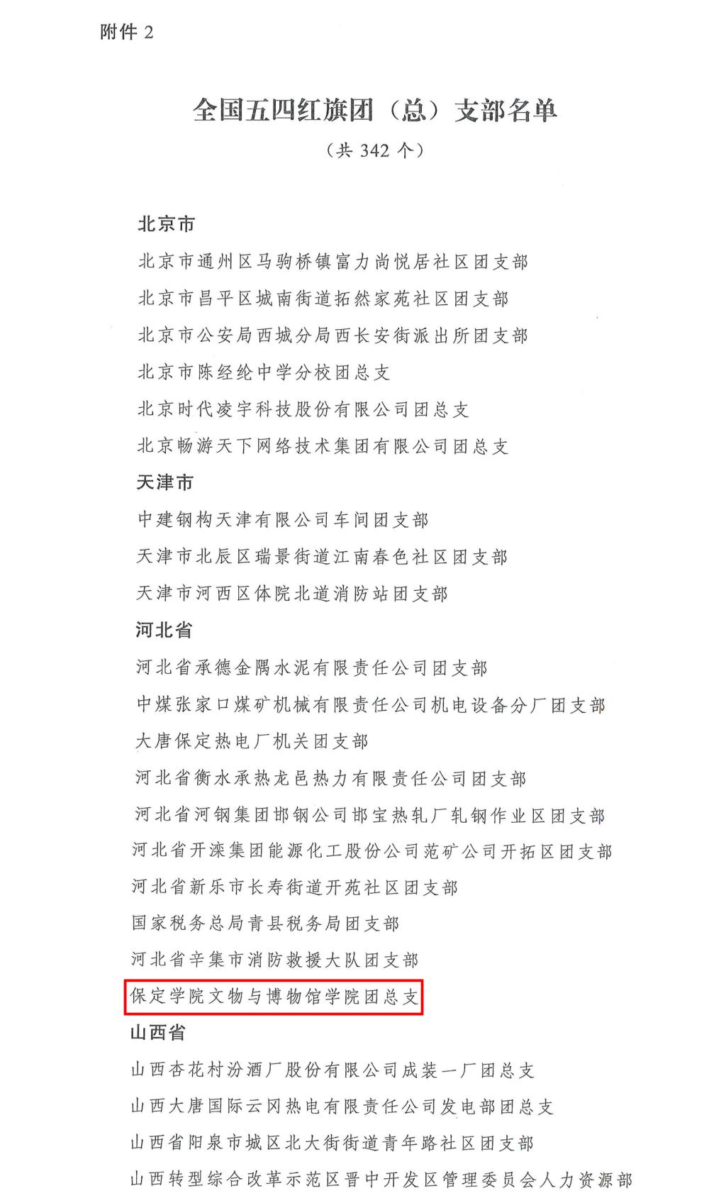 近日,共青团中央印发《关于表彰全国五四红旗团委(团支部)、全国优秀共青团员、全国优秀共青团干部的决定》,对全国先进团组织和优秀团员、团干部予以表彰。我校文物与博物馆学院团总支被授予“全国五四红旗团支部”荣誉称号。