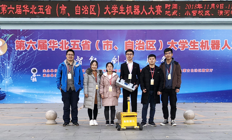 近日,2018年华北五省(市、自治区)大学生机器人大赛决赛在北京信息科技大学落下帷幕,我校信息工程学院物联网工程专业学生赵燕姣、刘耘凯、韩孝兴、景俊杰设计制作的作品《危险品巡检机器人》(指导教师:刘仲鹏、杨青青)荣获二等奖。