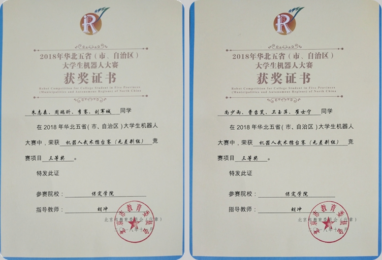 近日,2018年第六届华北五省(市、自治区)大学生机器人大赛总决赛在北京信息科技大学举行,我校数据科学与软件工程学院朱志森、周瑞昕、李赛、刘军城团队,尚少雨、曹召笑、卫玉萍、崔士宁团队(指导教师:胡冲)均荣获机器人武术擂台赛(无差别组)竞赛项目三等奖。