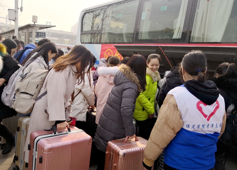 224日,校团委联合华中集团开展寒假返校“爱心送学”公益活动。志愿者们在保定火车站出站口迎接返校学生,引导他们乘坐专车平安回校。华中集团工作人员还在车上准备了祝福卡、钥匙链、玩偶等礼品,为大家送上新学期的祝福。此次活动累计服务300余人次,为学生平安返校提供了保障,进一步推进了校企合作。