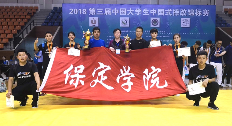 5月24日,第三届中国大学生中国式摔跤锦标赛在南京森林警察学院隆重举行。我校体育学院选派6名学生参赛,经过奋力拼搏,赵志荣获男子乙组竞技56公斤级冠军,郭莎莎荣获女子乙组65公斤级冠军,石清新荣获女子乙组个人基本功亚军和女子乙组52公斤级季军,王广微荣获女子乙组52公斤级季军,庞凯华荣获个人乙组基本功第五名和男子竞技乙组65公斤级第五名,董浩佳荣获男子竞技乙组82公斤级第五名。最终我校选手取得了女子乙组团体第三名,男子乙组团体并列第五名的好成绩。