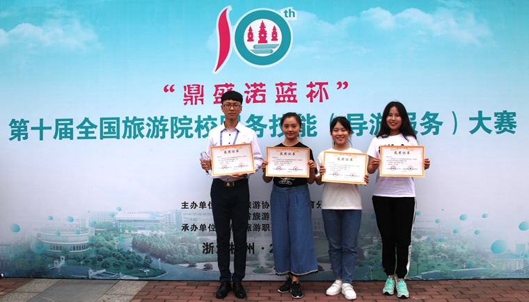 2018年5月9日至13日,由中国旅游协会旅游教育分会主办的第十届全国旅游院校服务技能(导游服务)大赛在杭州举办,本次大赛共有来自全国371所院校1160名选手参赛。我院资源与环境系选派的4名选手发挥稳定,经过理论考试、导游模拟讲解,才艺展示三个环节的激励角逐,刘帅荣获一等奖,刘柯玉、赵浩英、韩紫薇分别荣获三等奖。