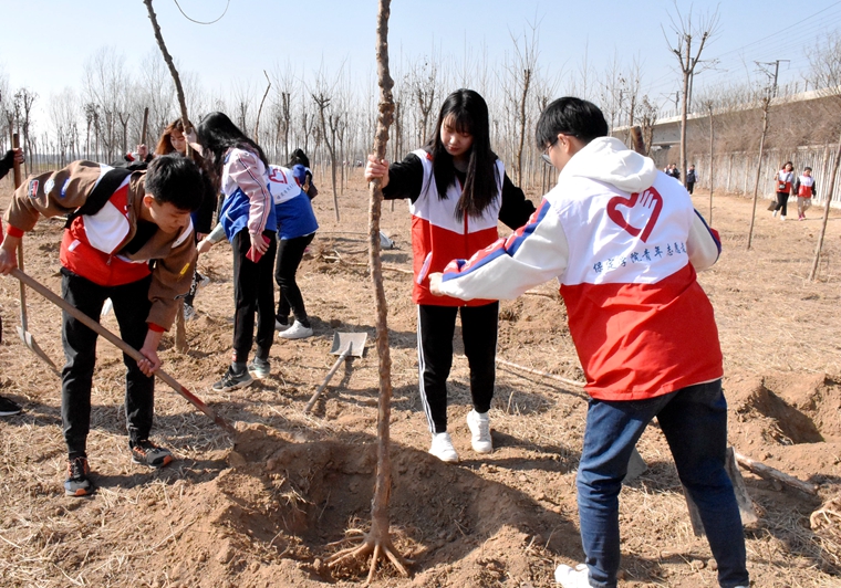 志愿者们组织有序、分工明确,大家齐心协力挖坑、扶苗、填土、夯土、浇水,投身于火热的植树劳动中,共栽种树苗1200多株。我校志愿者还协助工作人员清理活动现场废弃物,用点滴行动践行志愿服务精神。
