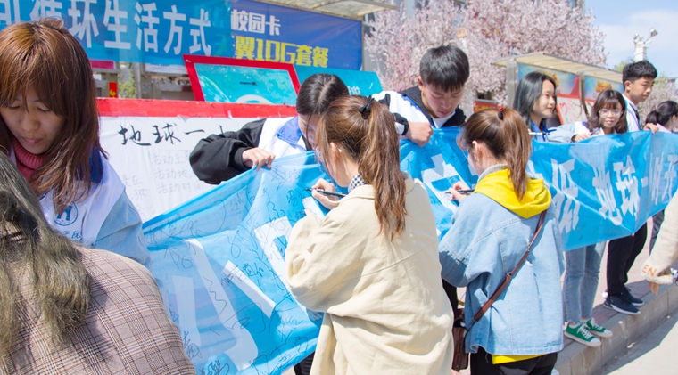 据悉,为呼吁师生提高环保意识,积极参与到“与自然共生”公益环保活动中,3月下旬,校团委组织举办了“地球一小时”主题系列活动,通过网络主题宣传、线下志愿服务、校园文化活动相结合的多种形式途径,倡导大家从积极参与“地球一小时”到自觉“超越一小时”,自觉践行低碳、绿色的生活方式。