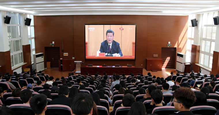 4月30日上午10时30分,纪念五四运动100周年大会在人民大会堂举行,中共中央总书记、国家主席、中央军委主席习近平出席大会并发表重要讲话。我校团委组织280余名青年团干和团员代表集中收看大会直播,各学院团总支在本单位自行组织收听收看。
