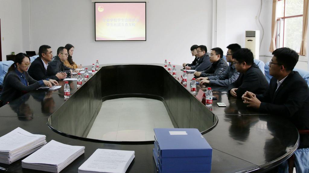 检查组听取了校团委书记郝学武关于我校学生会组织及学生社团工作的自查汇报。随后,根据互查要点清单,检查组逐一核查相关工作的落实情况,通过随机抽取的方式,对团员青年进行了基础团建知识测试,与校级、院级学生会成员、社团负责人就社团规模、人员要求、学生干部作风建设、日常活动经费使用、社团风险点摸排等进行了座谈。
