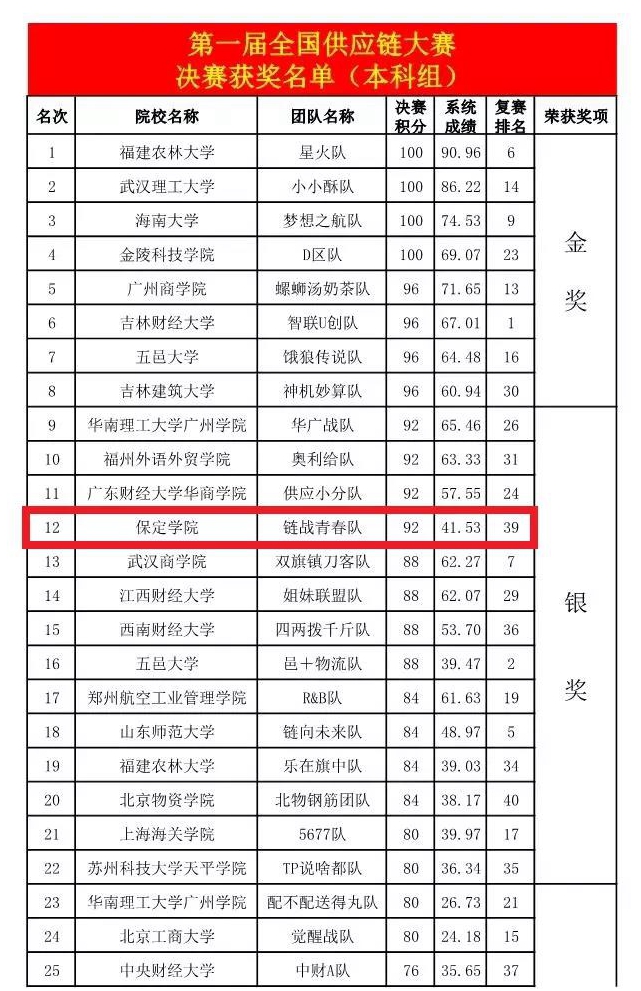 5月16日,由中国物流与采购联合会主办,中国物流与采购联合会教育培训部承办的第一届全国供应链大赛决赛落下帷幕。来自全国489所院校877支队伍的3500多名队员参加比赛。由商贸物流学院学生孙少龙、王佳乐、陈阳、李鑫组成的我校代表队,经过初赛、复赛的激烈比拼,以出色的表现在决赛中位列全国第12名,荣获银奖。