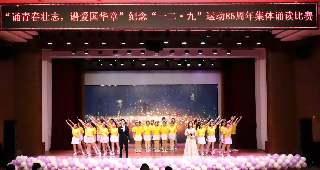 12月9日下午,“诵青春壮志谱爱国华章”纪念“一二·九”运动85周年集体诵读比赛在畿辅文化会堂举行。来自15个学院的选手用声情并茂的朗诵和富有创意的表演展示新中国成立以来的沧桑巨变,讲述民族复兴的中国故事,革命先烈和抗疫英雄事迹等。最终,音乐舞蹈学院代表队荣获一等奖,信息工程学院代表队、汽车与电子工程学院代表队荣获二等奖,马克思主义学院代表队、教师教育学院代表队和文学院代表队荣获三等奖。