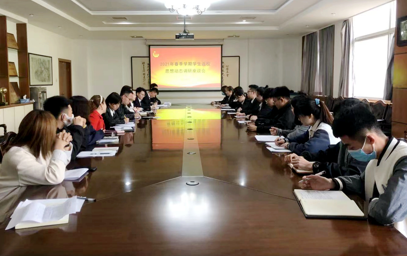 为深入了解学生寒假期间和返校后的思想动态,切实做好春季学期学生教育、管理和服务工作,4月14日,团委、学生处组织召开2021年春季学期学生返校思想动态调研座谈会,倾听学生心声,了解学生需求。