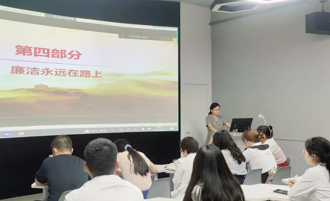 党总支书记田聪讲授的“学党史 讲廉洁”主题党课让全体党员同志牢记初心使命,坚定理想信念不动摇,时刻自重自省,筑牢拒腐防变防线。纪检干部通过集体学习二十届中央纪委二次全会精神,警醒自己要带头遵守纪律,始终坚守政治红线、纪律高压线。通过观看警示教育专题片《永远吹冲锋号》之《铁规矩硬杠杠》,为全体党员敲警钟明底线,希望大家以案为鉴、防微杜渐,始终做到明规矩、知敬畏、存戒惧,坚持锤炼忠诚干净担当的政治品格。
