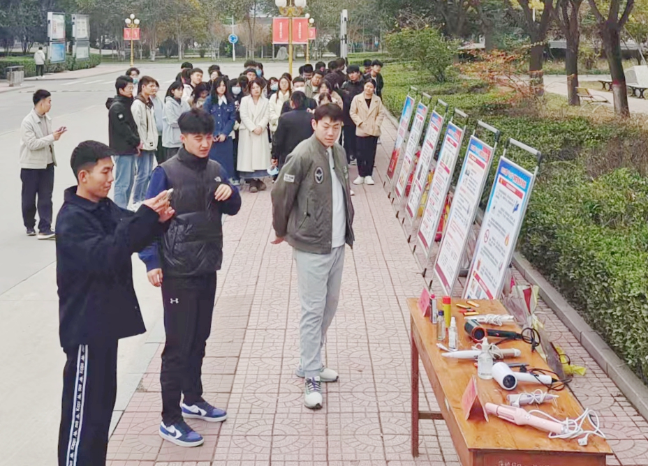 安全工作处在教学楼、图书馆、食堂、宿舍楼等关键点位设置消防安全宣传展板,以图文并茂的形式介绍相关知识和应急处理方法;给各二级单位发放消防安全宣传单,提醒师生“消防安全无小事,防微杜渐是关键”;在校内电子屏播放消防安全知识和相关宣传视频。同时,针对高校学生使用违禁物品引发火灾的诸多事件,为警示使用违禁物品带来的风险隐患,安全工作处举办了一场特别的展示活动,将在前期学生宿舍安全大检查中排查出的易引发消防安全事故的违禁物品一一陈列,并通过真实案例向同学们详细讲解使用违禁物品的危害。