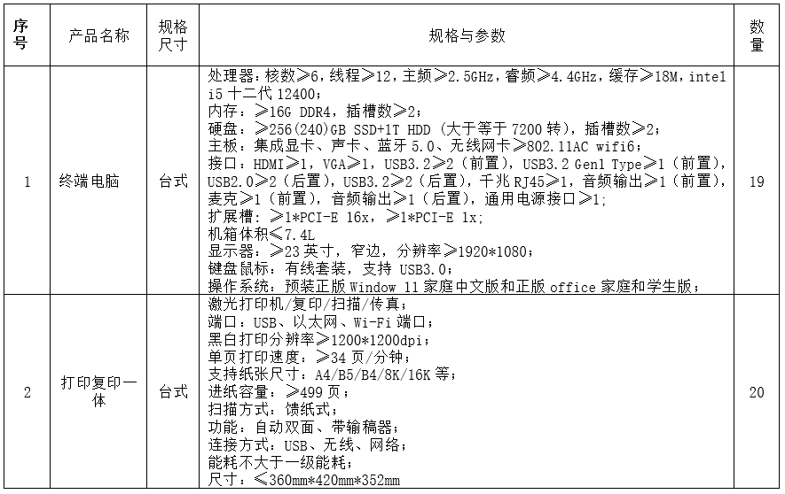 因学校工作需要,拟购置一批办公设备,欢迎各适合条件的供应商前来报价。