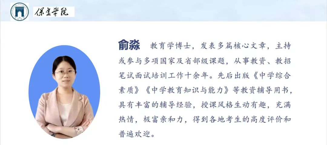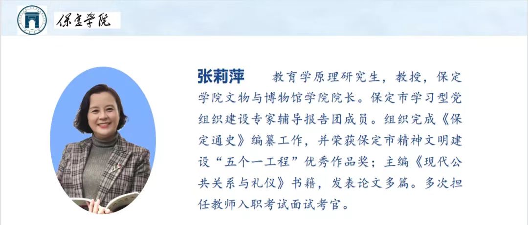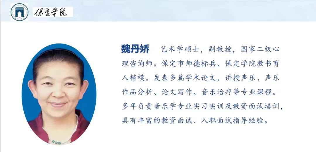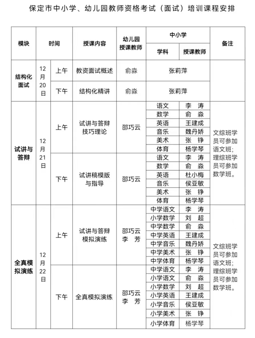 本次培训是保定学院举办的保定市中小学、幼儿园教师资格考试系列公益培训的第二阶段,将在首期(笔试)公益培训成功举办的基础上,继续发挥保定学院师范教育优势,聚集优质师资,推出精品课程,助力更多乐教、适教人员顺利通过中小学、幼儿园教师资格面试。