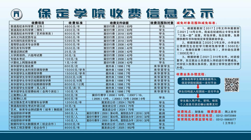 保定学院收费信息公示