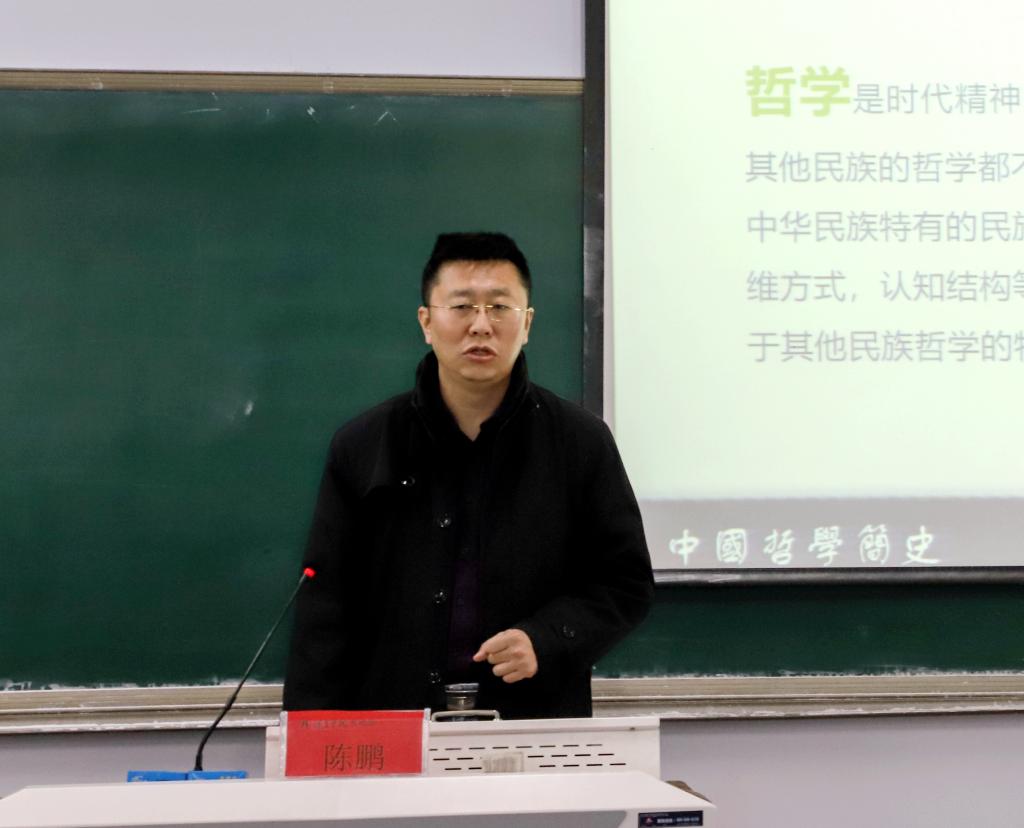 在讲座中,陈鹏从中国哲学的历史渊源出发,对中国哲学的发展脉络做了清晰梳理。他以冯友兰先生对中国哲学的分类为基础,阐述了儒、道、名、法、墨、阴阳等六家学派的主要思想,说明了中国哲学历史的发展流变。陈鹏强调,中国哲学的文化底蕴博大精深,希望同学们继承、弘扬哲学精神,坚定文化自信,做品格高尚的时代新人。